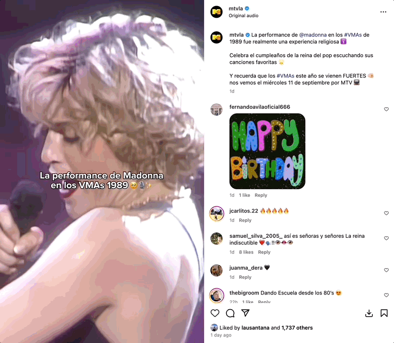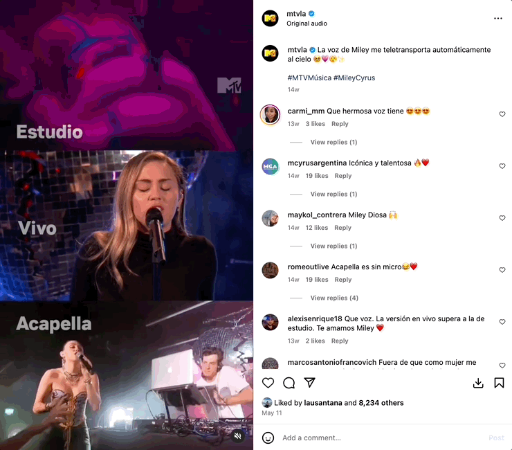 Nowadays, MTVLA has 4.1 million followers, with increased engagement by the minute that strengthen its positioning digitally with an user-driven content strategy in MTVLA’s top markets: Mexico, Colombia and Argentina.