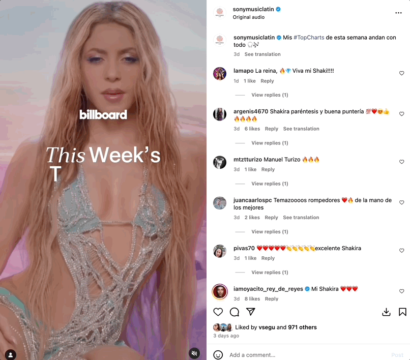 As part of our editorial strategy, we developed a series of content such as our weekly Sony Music Latin News, or Top Charts that were recurrent and helped position the brand as the top label in the industry.
